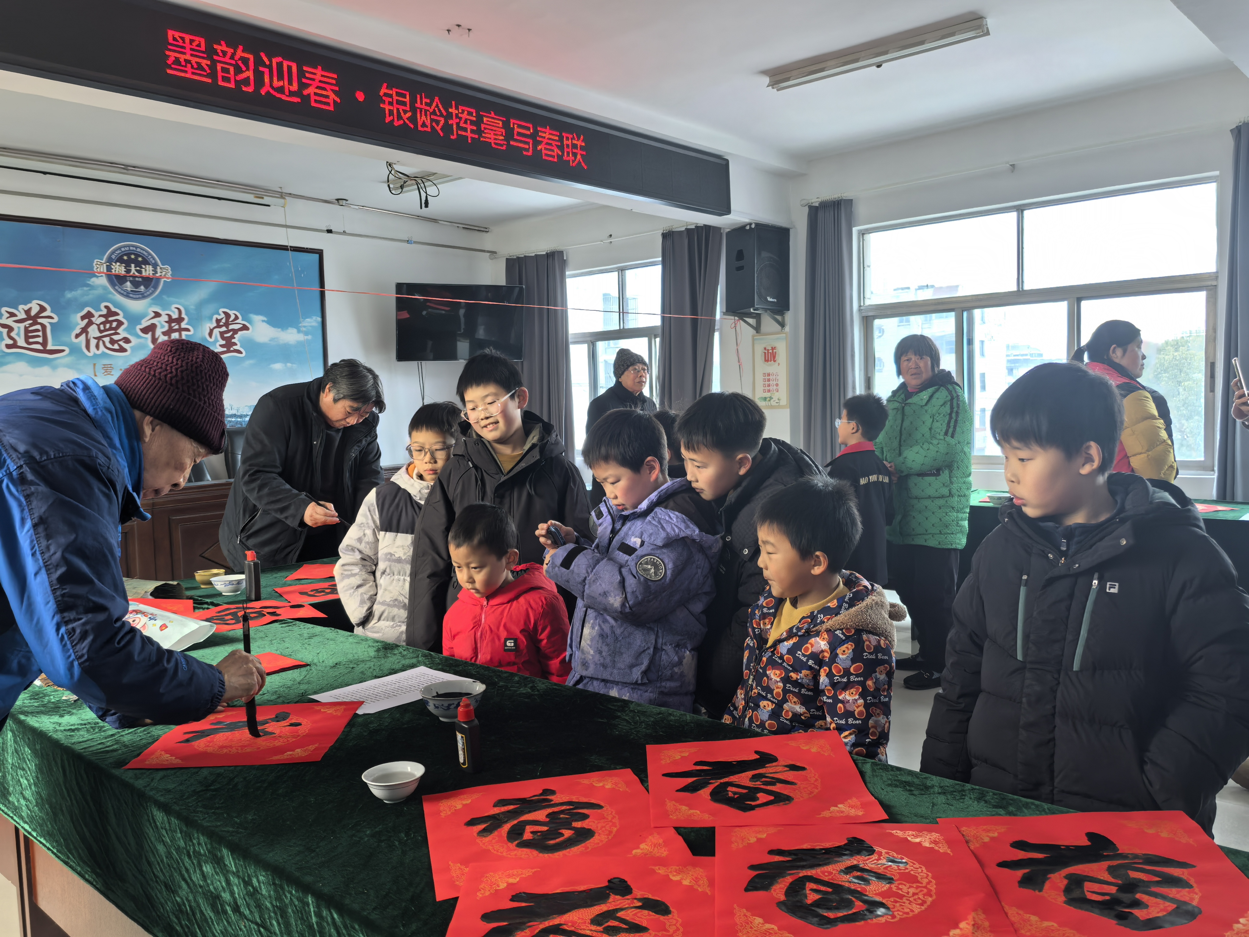 岁末添喜,年味愈浓。为进一步丰富社区居民精神文化生活,营造喜庆热烈、安定祥和的节日氛围,2月5日,海安市海安街道海园社区党总支联合海园社区新时代文明实践站精心策划组织开展 “银龄挥毫书骏景 稚子巧手剪丰年” 主题活动,邀请社区老年书法爱好者与青少年齐聚一堂,以笔墨传情、以剪纸寄意,共绘新春盛景。