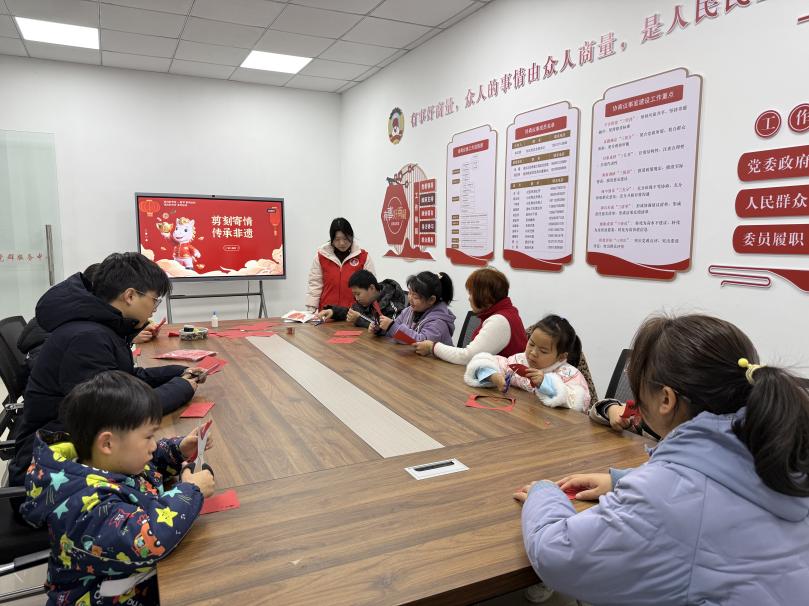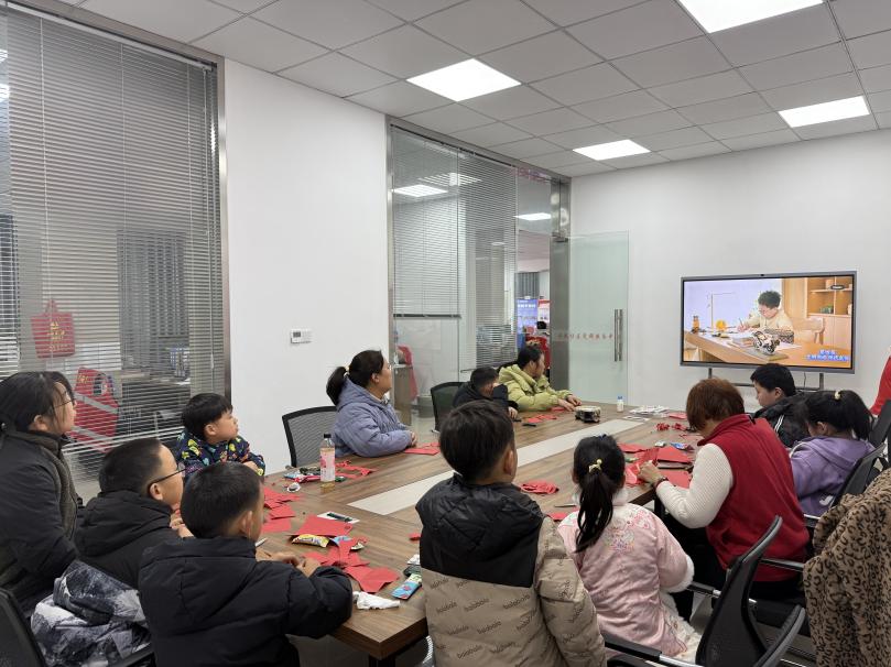 剪纸是中华优秀传统文化的瑰宝,更是春节不可或缺的符号。为让孩子们近距离感受非遗魅力,传承传统技艺,剪纸环节中,志愿者向孩子们介绍了剪纸的历史渊源、民俗寓意以及基本剪法,从简单的三角形、圆形入手,逐步教大家剪春节灯笼、鞭炮、窗花等图案。孩子们听得认真、剪得专注,在家长及志愿者的陪同下,握着剪刀,专心致志地裁剪着手中的红纸。不一会儿,一张张红纸在孩子们的手中变成了形态各异、寓意美好的剪纸作品,大家拿着自己的成果相互展示,脸上洋溢着自豪与幸福的笑容,在剪刻之间,传承非遗文化,寄托新春祝福。