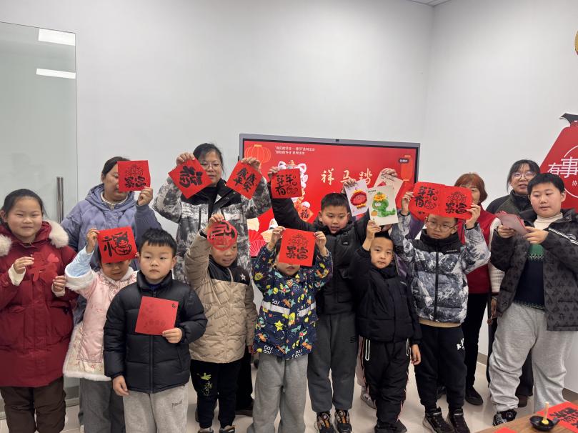 “这个福字拓出来真好看!”“我要拓一个小马,祝大家马年吉祥!”拓印环节现场,孩子们的欢声笑语此起彼伏。志愿者提前备好刻有福字、灯笼、祥马、春联等春节元素的拓印模板、颜料和宣纸,耐心向孩子们讲解拓印的技巧和注意事项,手把手指导大家蘸墨、铺纸、按压、揭纸,一步步操作下来,一幅幅纹理清晰、充满年味的拓印作品渐渐成型。孩子们专注投入,亲手将新春的美好寓意拓印在红色鎏金的宣纸上,指尖沾染墨香,心中盛满欢喜,在体验传统拓印技艺的同时,真切感受着春节独有的文化韵味,将对新年的期盼藏进每一幅作品里。