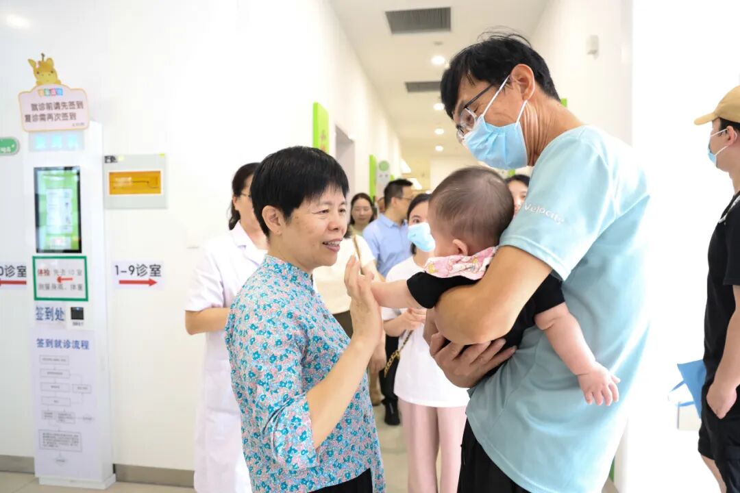 随后,彭烨主席一行步入儿童医院门诊大厅,映入眼帘的黄色巨型长颈鹿与高耸的健康树,瞬间消解了医疗空间的严肃感。“医院从设计之初就植入儿童友好理念,选用从海洋到天空的色彩演变和动物元素,为孩子们带来童话般的就诊环境。”在讲解员引导下,调研团依次走访部分功能区域,其中体检中心、儿童保健与心理健康中心已成为医院为全市儿童提供全周期健康服务的生动缩影。