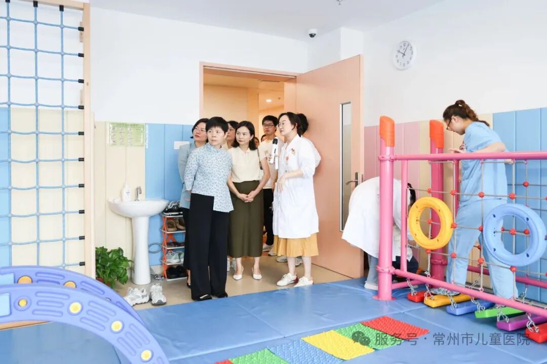 在输液室,恐龙主题装饰与科普展区吸引了众人目光,患儿们在常州地标性文化“IP”恐龙的陪伴中完成治疗。康复中心的治疗室内,专业器械与童趣软装有机结合,医护人员介绍,一些康复项目通过游戏化的训练方式帮助患儿恢复功能。特需病房里,家庭式布局与陪护设施彰显人文关怀。在医学影像科的核磁共振模拟机前,彭烨主席详细询问设备使用情况。周栋院长表示,“这台等比例还原的模拟机有效降低了患儿在进行此类检查时产生的幽闭恐惧等不适,相邻的舒适化诊疗中心,不仅让患儿就诊感受更舒适,也极大提升了医疗安全和效率,我们的医疗服务既有专业精度又有人文温度。”