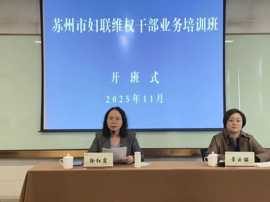 11月24日至27日,苏州市妇联维权干部业务培训班在恩来干部学院成功举办。市妇联党组书记、主席徐红霞作开班动员讲话并讲授开班第一课,市妇联党组成员、副主席章云丽主持开班仪式,各县级市、区妇联干部、基层妇联维权工作人员共60人参加了培训。